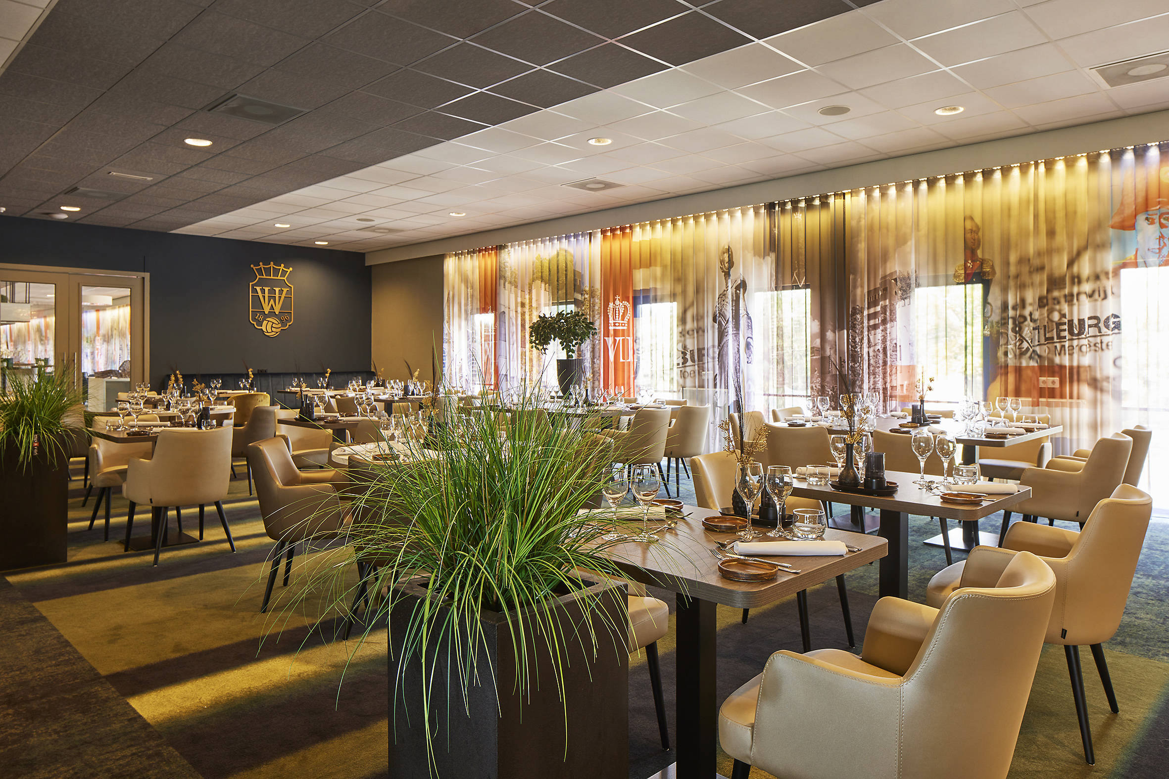 Het restaurant van het Koning Willem II stadion combineert culinair vakmanschap met uitzicht op het veld. De open keuken en centrale bar zorgen voor een levendige sfeer, terwijl het stijlvolle interieur perfect past bij zakelijke diners, recepties of informele ontmoetingen. De ideale plek voor een lunch, diner of besloten feest.