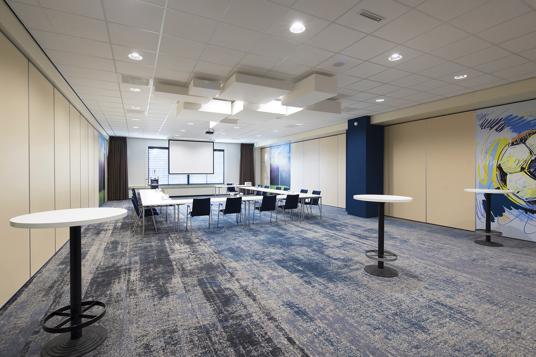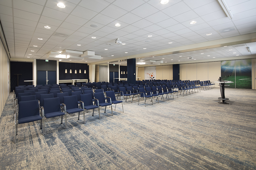 De zaal is ideaal voor presentaties, congressen en beurzen voor middelgrote tot grote groepen.